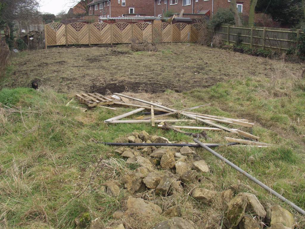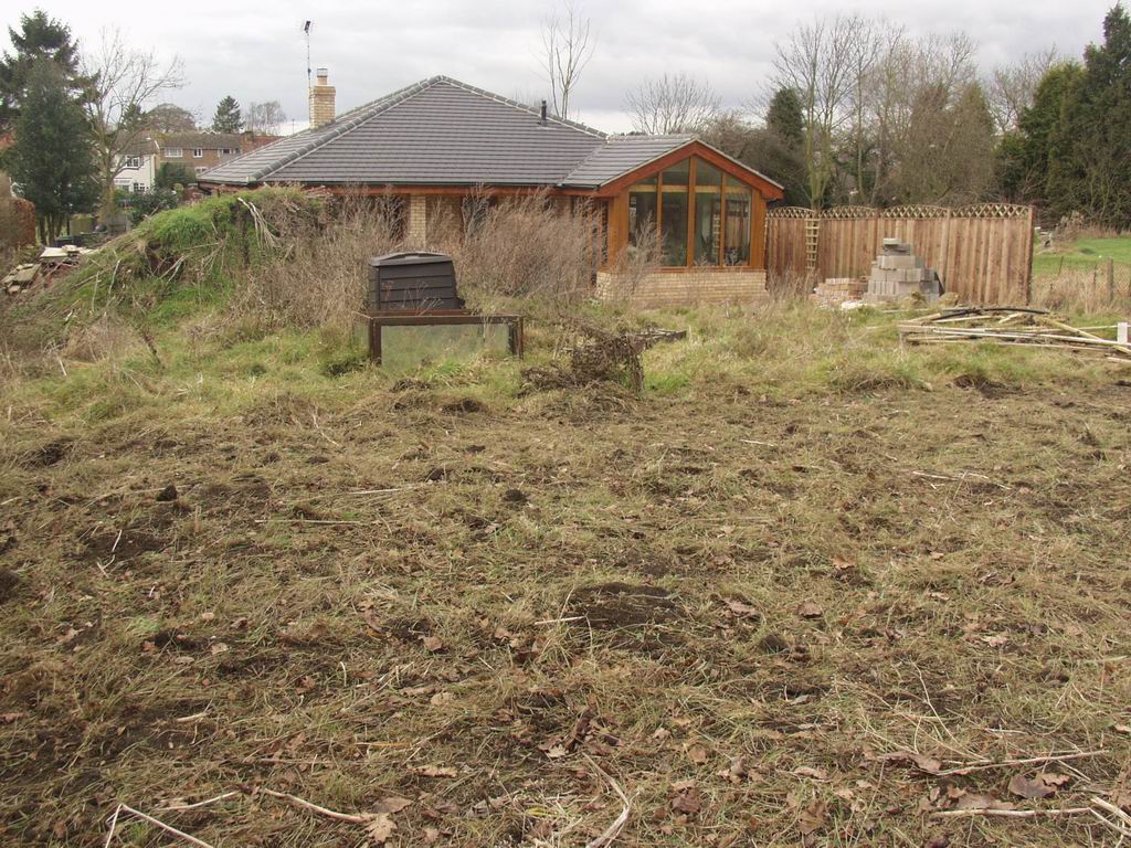 Even though we had moved into the bungalow, the hard work wasn't over. The land to the rear of the plot was just as the ground work had left it - sloping upwards away from the bungalow, and largely of clay, although there was a massive pile of topsoil waiting to be used. The first job was to skim off all the weeds which, in the year since we had started, had totally taken over. This resulted in many trips to the local tip.