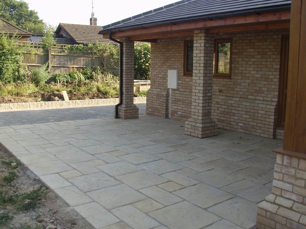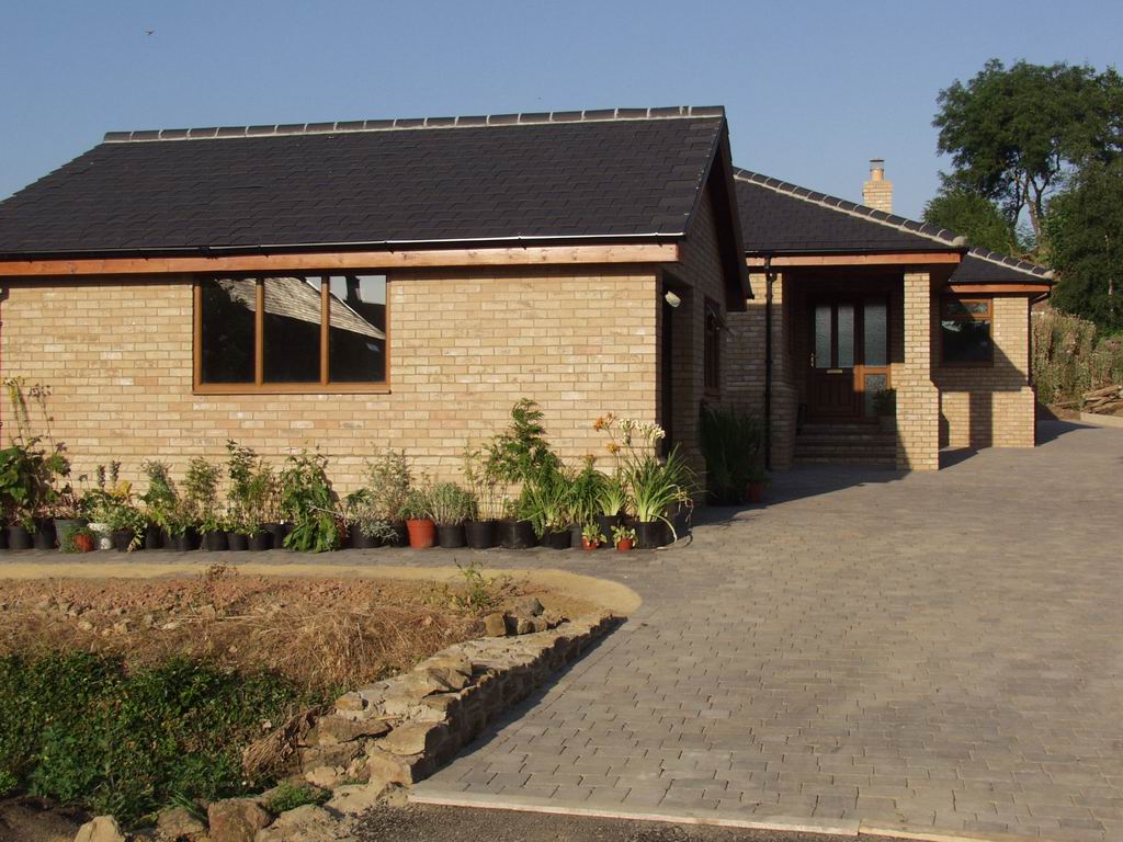 The area surrounding the bungalow was completed with block paving to the front and side, and with riven slabs at the rear.