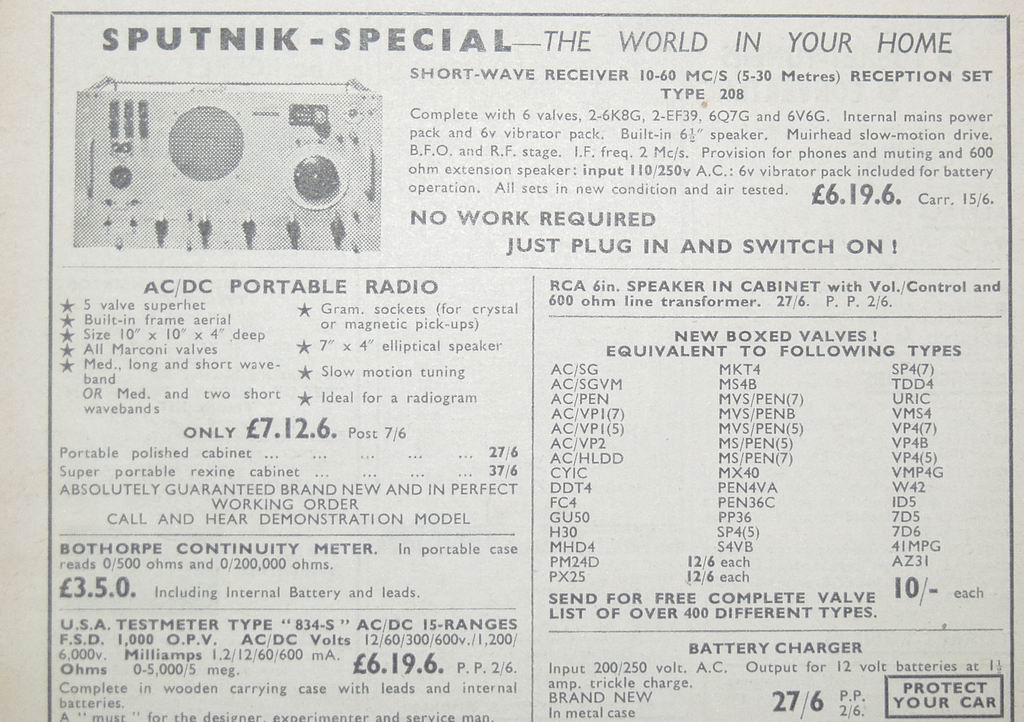I became interested in radio in the late 1950s when my parents bought me an Ivalek crystal set as a Christmas present, and later on an ex-army receiver - the Wireless Set R208 - which was advertised at the time as the "Sputnik Special" because it covered the low VHF frequencies used by the first Russian satellites.