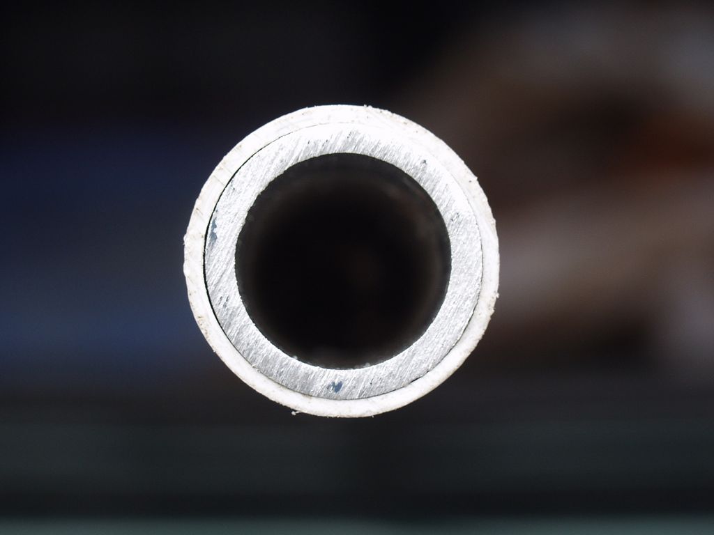 A close-up view of the bottom of the PVC centre post showing the aluminium strengthening tube in place.