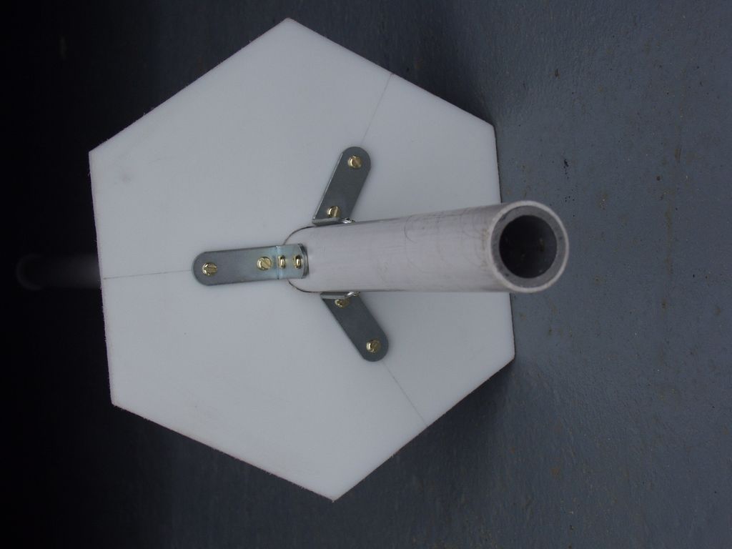 A view from the underside of the baseplate showing the centre post now fixed in place.