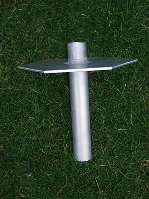 My Classic Mk 1 baseplate arrangement failed in strong winter gales, so I rebuilt the antenna more robustly. This is the aluminium baseplate and rotator stub mast which I had welded up by a local engineering firm.