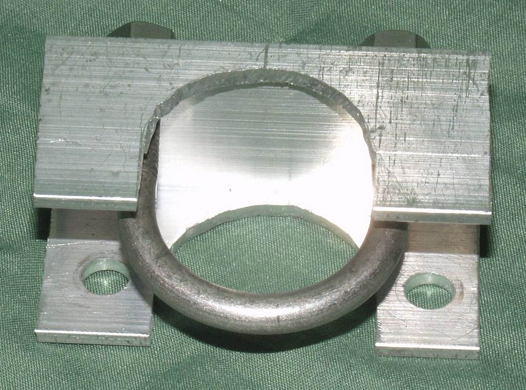 A closeup of the assembled baseplate fixing bracket.