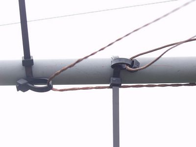 I tried to increase the Q of the Reflector by making it out of two widely spaced wires. This is the arrangement I used to keep them apart where they fixed to the spreaders.