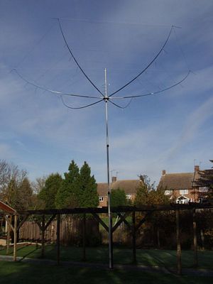 Multiband broadband testbed being tested for F/B. The XYL thought I was building her a wooden garden pergola - but it was atually an antenna support struture :)