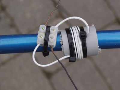 The arrangement I used to inductively load the Reflector on my 10m Broadband testbed.