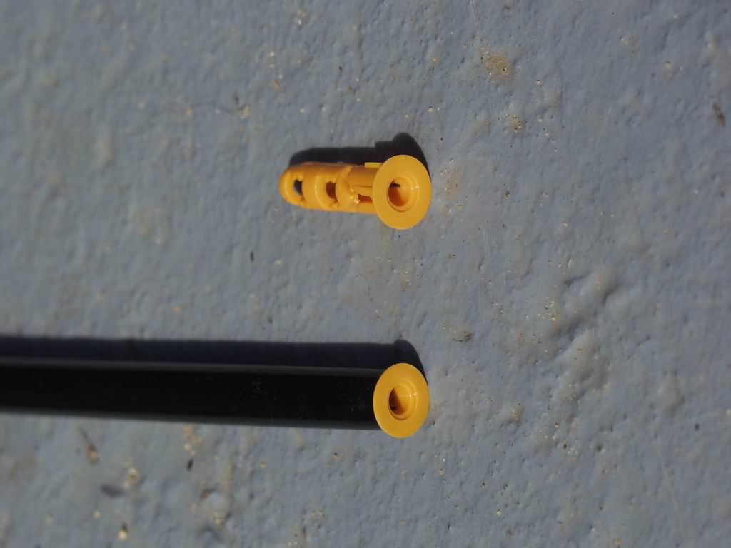 I glued a plastic plug into the end of the spreaders to create a fixing point for the support cords. I used stainless self-tappers that were thin enough not to expand the plug and split the end of the spreader