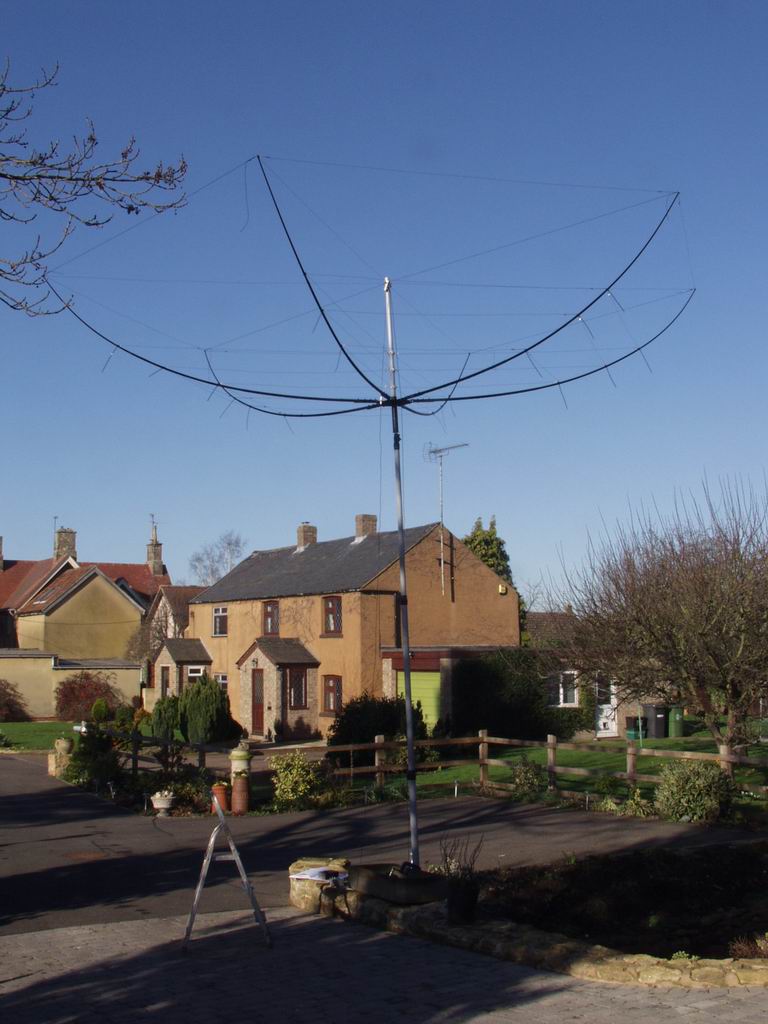 I strongly recommend that you adopt K4KIO's idea of pulling the structure into shape by cutting 12 equal length nylon cords and stringing them between centre post and spreaders - that way it will automatically take up the perfect hexagon shape. Here's a picture of mine at that stage, before loading the wires.